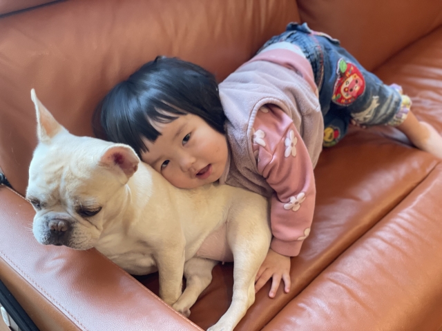 食事や寝かしつけの時間を調整し、娘と愛犬がぶつからないようにしています。