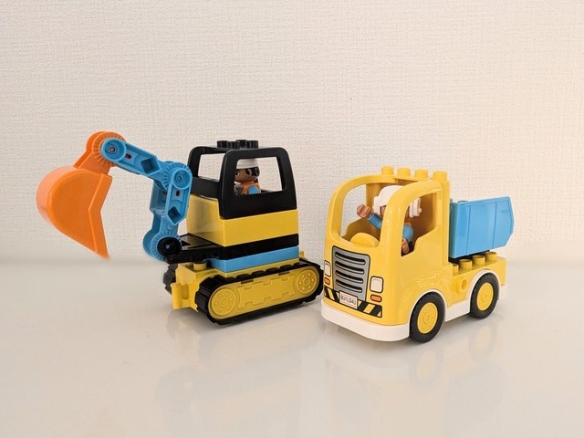 レゴ社公式の質のいいおもちゃなだけあって、価格は全体的に高め。トラックとショベルカーのセットは2,980円、大型のお城や電車セットは1万円以上と、幼児のおもちゃとしては正直高いなと思いました。