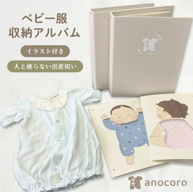今回私が購入したのはイラスト付きベビー服 収納アルバム「anocoro」。