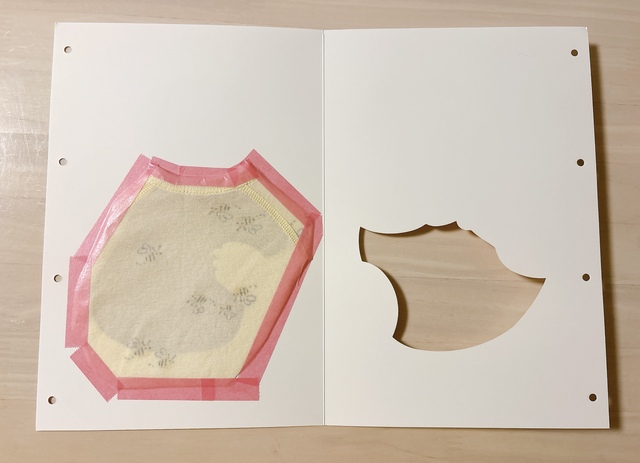 ハサミを使い、アルバムのイラストの抜き穴に合わせて大きめにカット。