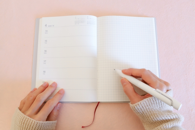 ノートに自分の気持ちを一通り書いたら、次は来年の手帳を開きます。