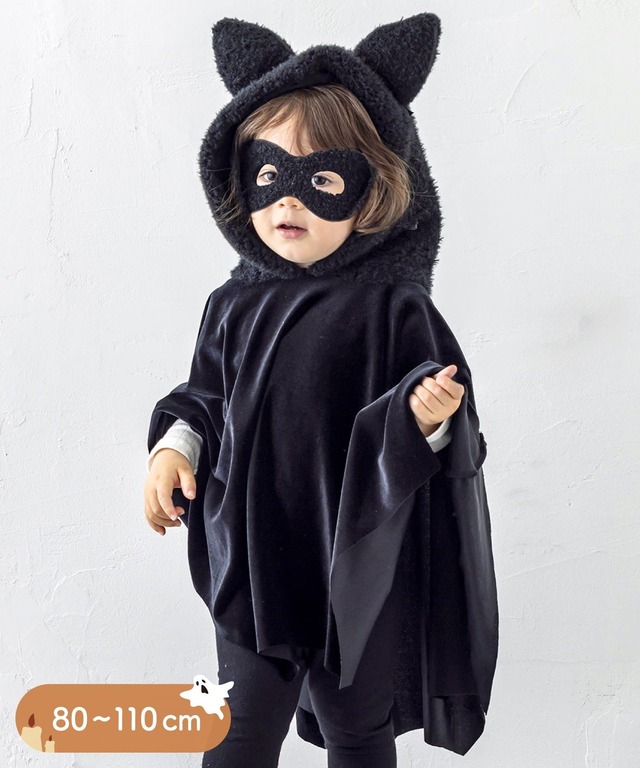 アイマスクとポンチョで、コウモリに仮装できるこちらのポンチョ。ユニセックスなので女の子も楽しめますが、シンプルなデザインなので、かっこいいもの好きな男の子が着るのにピッタリです。